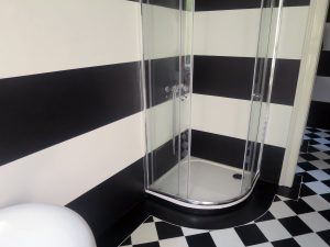 Tile renovation without demolition, eliminating the old interstice, without new interstice, in two colours.